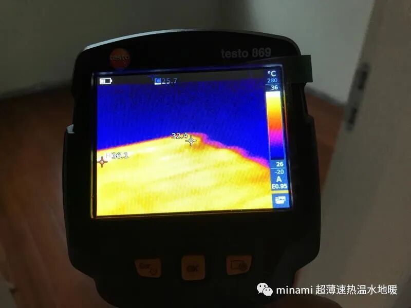 马上开启地暖,30分钟后使用热成像仪进行发热测试。整体发热迅速,温度均匀,效果perfect!