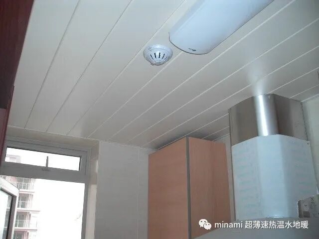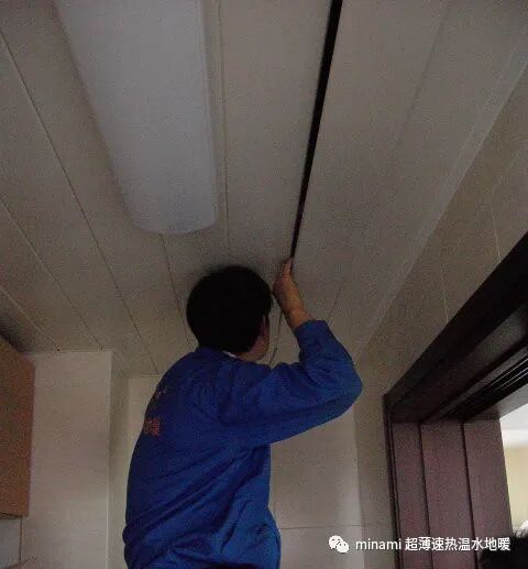 我们观察了想要加装地暖的房屋后,与屋主沟通,决定把好藏的主管道藏进厨房的吊顶里,更加美观。