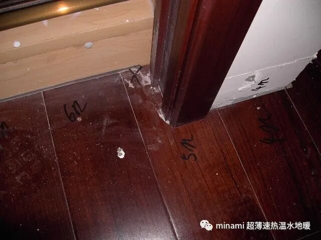 需要铺地暖的房间,会在地板上编号,这样拆下来的地板才能原样组装回去。